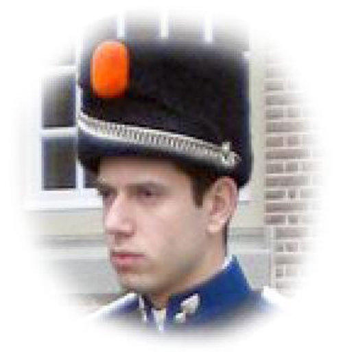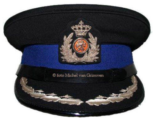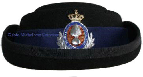 De Koninklijke Marechaussee (KMAR) verzorgd de bewakingbij de paleizen. Hier enekel hoofddeksels in diverse rangen.Bij het ceremonieel tenue horen de kolbakken.(zgn. berenmutsen)