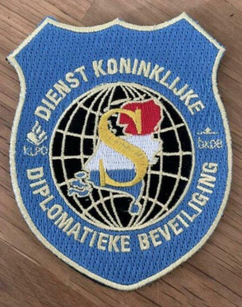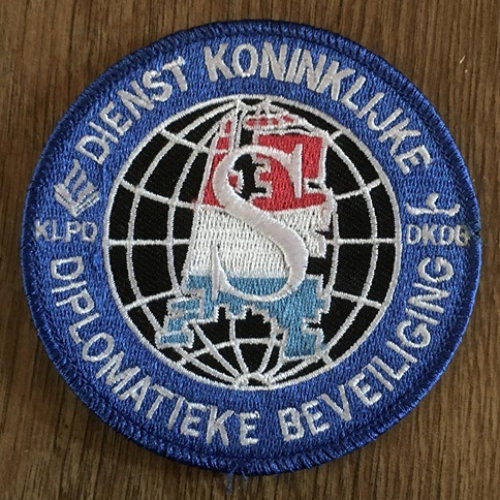 BEWAKINGPersoonlijke bewaking op locatie geschiedt door de DKDBDienst Koninklijke en Diplomatieke Beveiliging.Voorheen “veiligheidsdienst”Links een patch en een wandschildje van deze organisatie(eigen collectie)