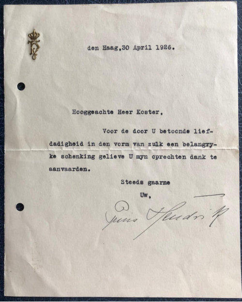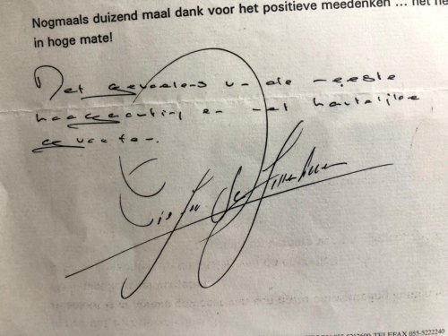 rechtsonder: persoonlijk handgeschreven bedankje van Beatrix.