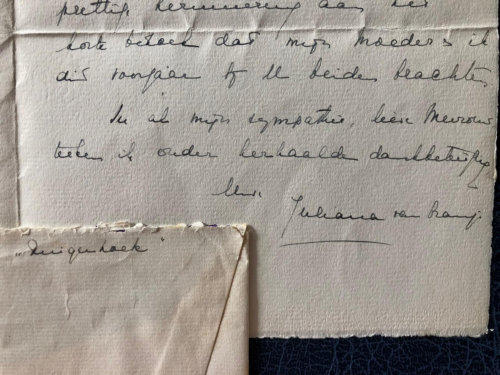 Handgeschreven brief van Wilhelmina met envelop.