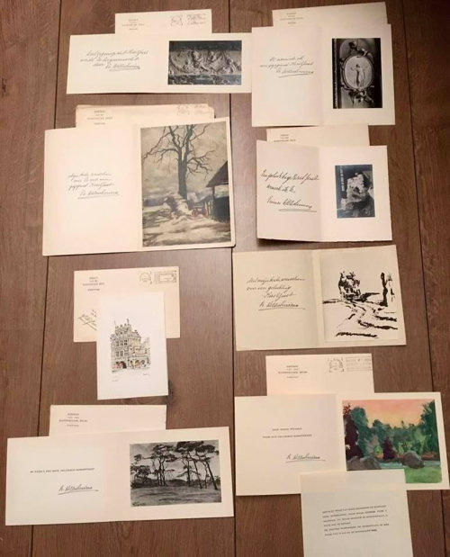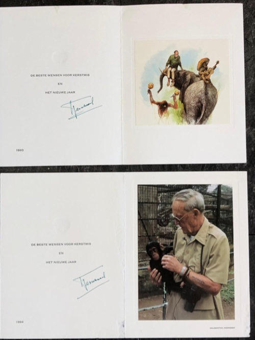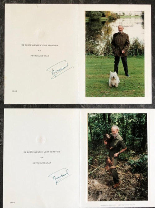 Boven: enkele kerstkaarten zoals die door Prins Bernhard werden verzonden,
