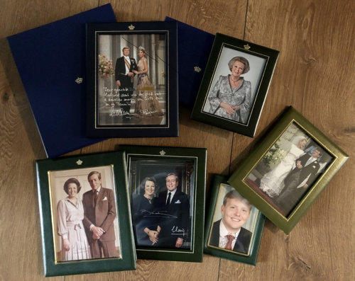 Er worden gesigneerde foto’s gegeven aan relaties, bij staatsbezoeken, of als blijk van waardering. Ook het hofpersoneel krijgt bij het pensioen gaan een gesigneerde foto, in een leren lijstje. Deze worden gegeven in een geschenkdoos, met de opdruk van een gouden kroontje. Daar omheen een (blauw) papier, wat wordt samengehouden door een gouden koordje, Dit wordt vastgezet met een goudkleurig zegel met in relief een kroontje.Er zijn ook replica lijstjes in omloop, welke zijn uitgebracht door het blad “Royalty” hiervan zien u hier twee voorbeelden. De gesigneerde foto’s hierin horen niet officeel bij deze lijstjes maar zijn zelf toegevoegd.Niet alle lijstjes op deze foto’s behoren meer tot de collectie,