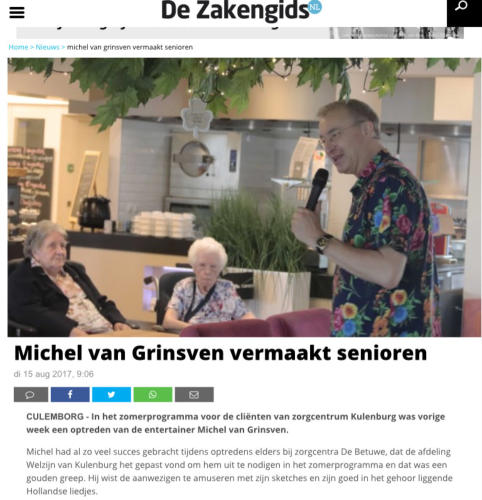 Reacties na optredens:- “Wanneer komt u weer?”- “Dat hadden we net even nodig.”- “Het was weer eens iets anders!”- “Ik wil u even bedanken voor de fijne middag.”- “Wat was het leuk.”- “Daar was ik net aan toe.”- “Mag ik nog een extra foto, want ik doe vrijwilligerswerk in een huis, en het zou ook echt iets zijn voor bij ons.”- “Uw kaart van de vorige keer staat nog altijd op mijn kamer.”- “wat ben ik blij dat ik toch gekomen ben vanmiddag!”- “We kwamen binnen als een paar ouwe uitgebluste vrouwtjes, en we gaan nu weg als een stelletje ondeugende jonge meiden, haha.”- “Ik heb niet meegzongen omdat het moest, maar omdat ik het zelf ook echt wilde!”- “Ik zag de ogen van mijn moeder weer helemaal opleven. Heel erg bedankt. Dit betekent zo veel voor mij en voor haar.”- Bij een hotel: “Ik check eerst of u er ook weer bent, voor ik de vakantie ga boeken.”